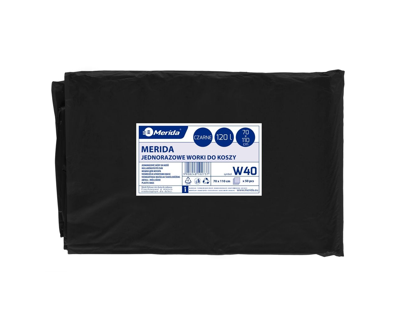 MERIDA Disposable waste bags ldpe, 120l capacity, 70 x 110cm, black, 50 pcs. / package