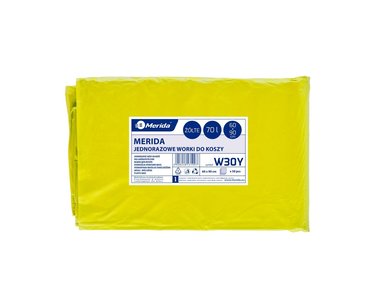 MERIDA Disposable waste bags ldpe, 70l capacity, 60 x 90cm, yellow, 50 pcs. / package