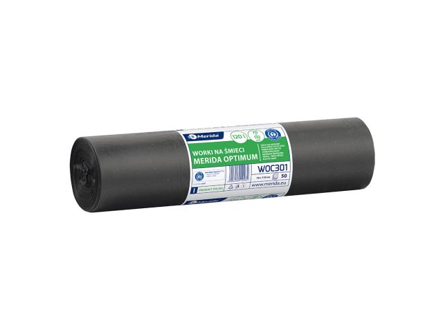 MERIDA OPTIMUM BLUE ANGEL - disposable waste bags, 120l capacity, 70 x 110cm, black, 50 pcs. / roll