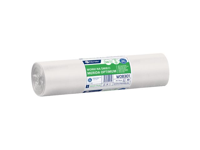 MERIDA OPTIMUM BLUE ANGEL - disposable waste bags, 120l capacity, 70 x 110cm, white, 50 pcs. / roll