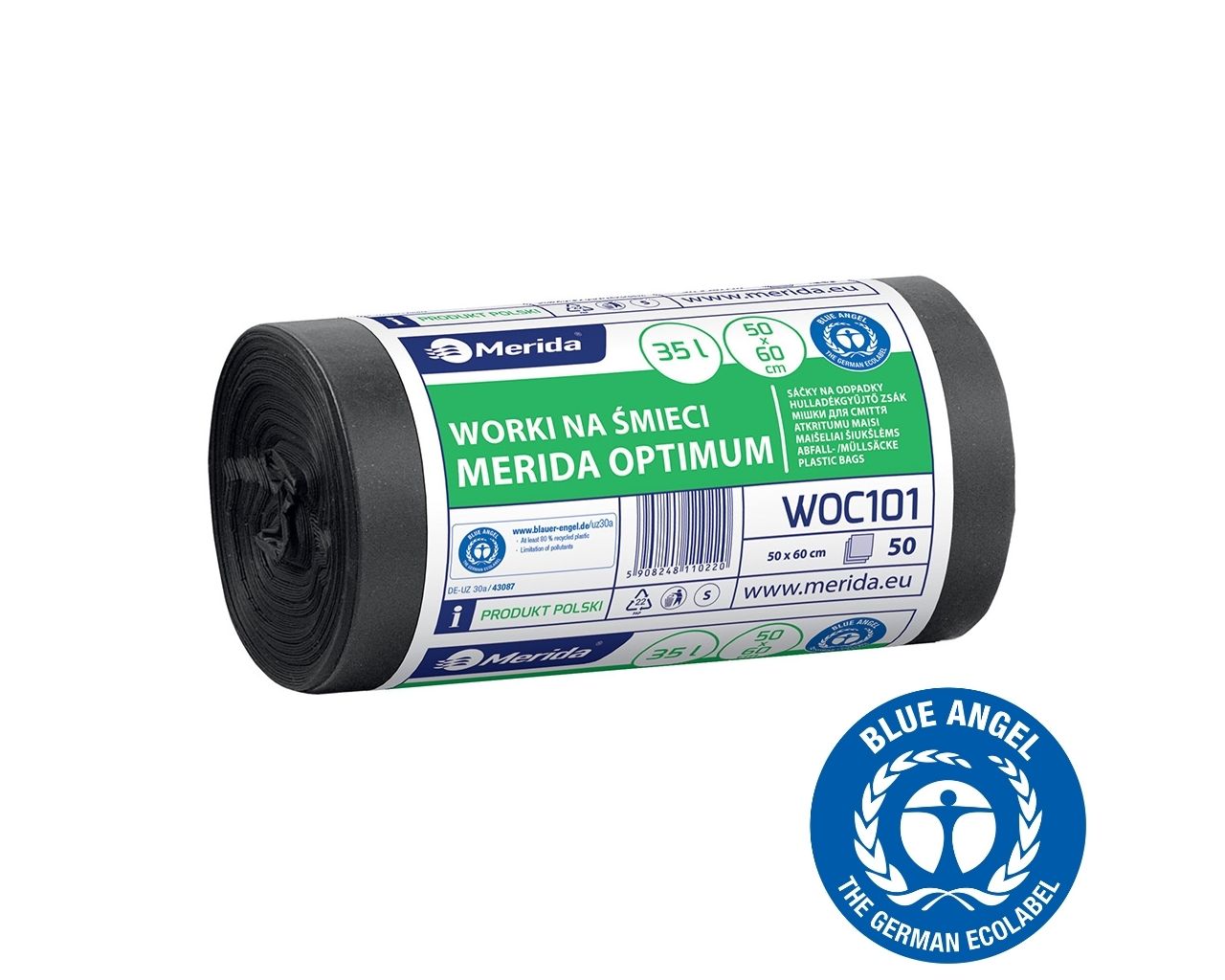 MERIDA OPTIMUM BLUE ANGEL - disposable waste bags, 35l capacity, 50 x 60cm, black, 50 pcs. / roll