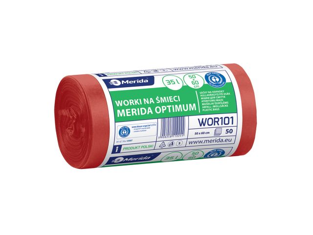 MERIDA OPTIMUM BLUE ANGEL - disposable waste bags, 35l capacity, 50 x 60cm, red, 50 pcs. / roll