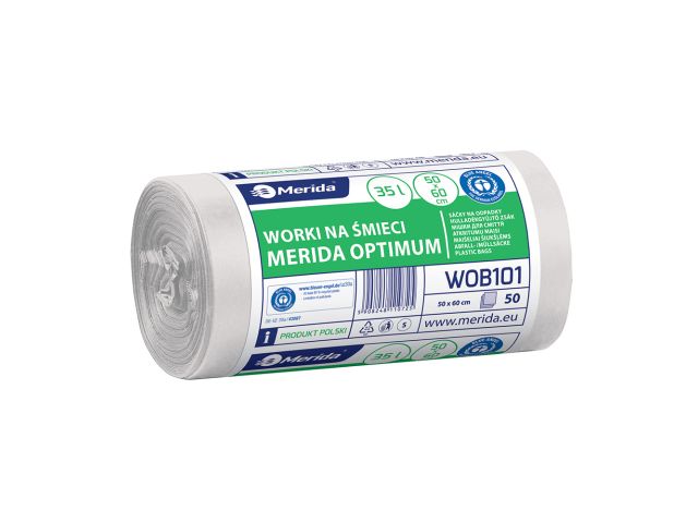 MERIDA OPTIMUM BLUE ANGEL - disposable waste bags, 35l capacity, 50 x 60cm, white, 50 pcs. / roll