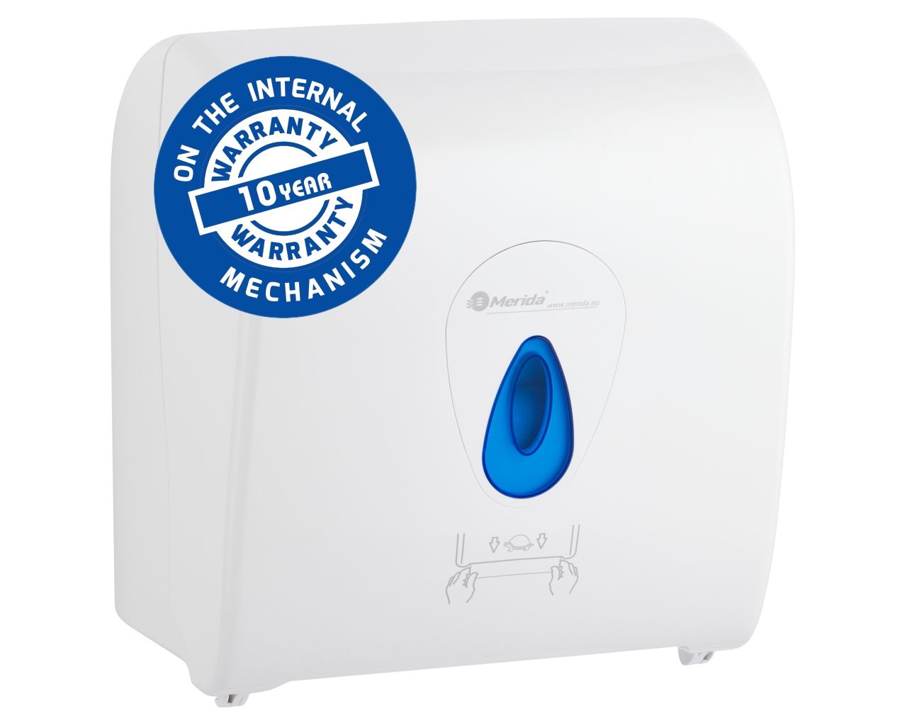 - the dispenser holds a roll with a diameter of up to 19.5 cm, which gives even 250 meters of towel (over 1000 towel sheets from one roll)