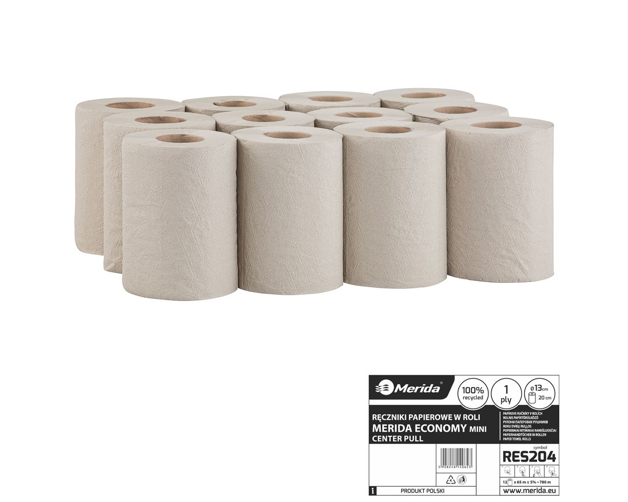 Merida economy - paper towel in roll, grey, 1 -ply, recycled paper, 65m (12 rolls / pack.)