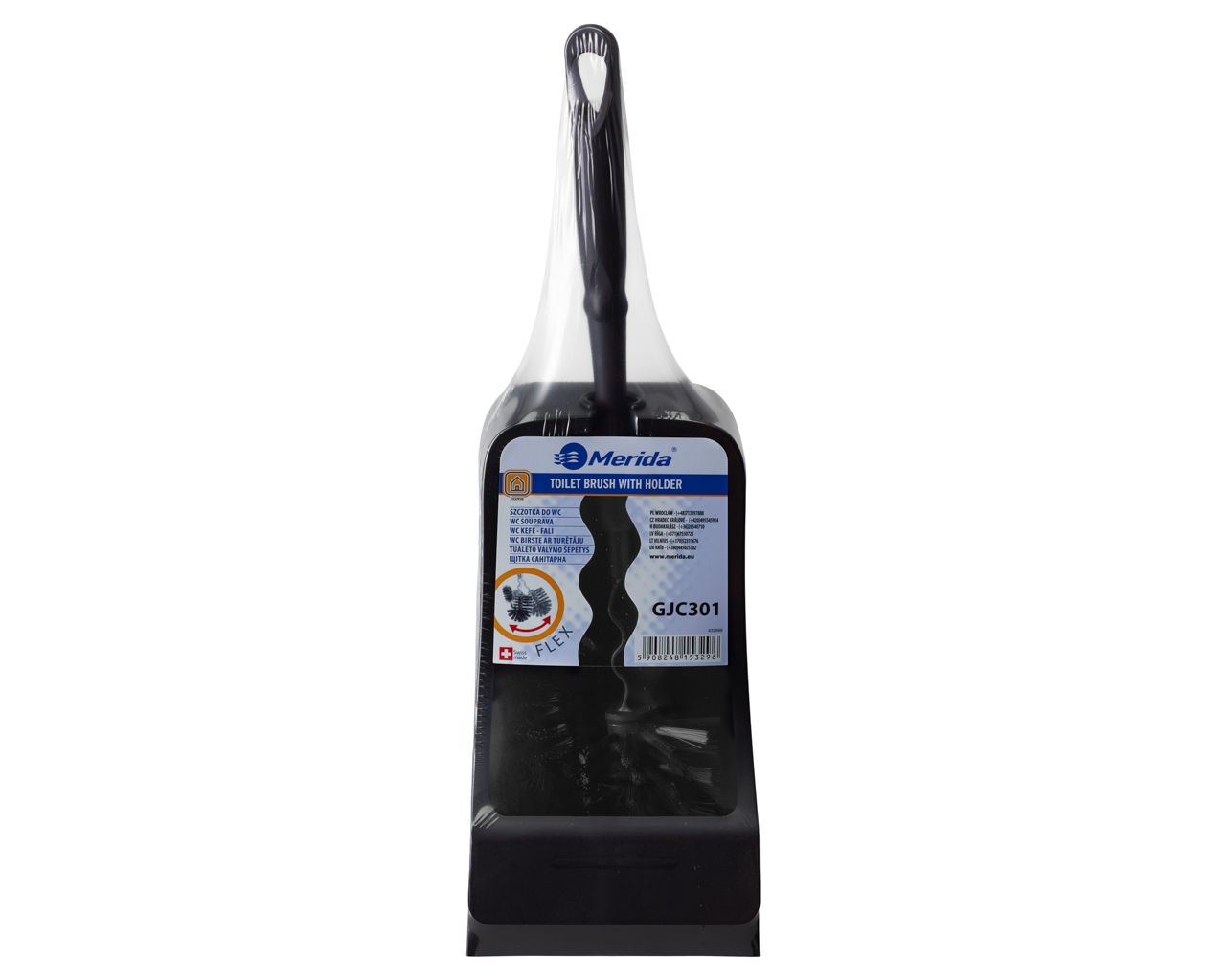 Toilet brush with handle and tip for cleaning the inner edge of the bowl, black